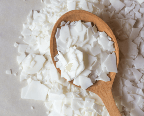 - It is solid ivory white, waxy flakes with a very faint odour made from 100% plant materials. The fatty acids are taken from olives and are chemically very similar to the skin’s natural lipids.